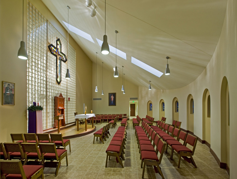 The gallery on the right shows how we transformed the existing sanctuary into a gracious space that more than serves St Albert's growing needs.