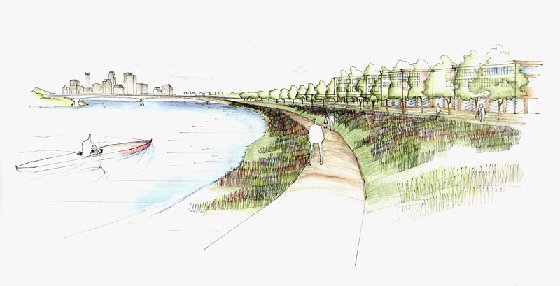 In the Fall of 2004 my studio was challenged to redevelop a highly industrial area just north of the falls on the Mississipi river in Minneapolis, MN.