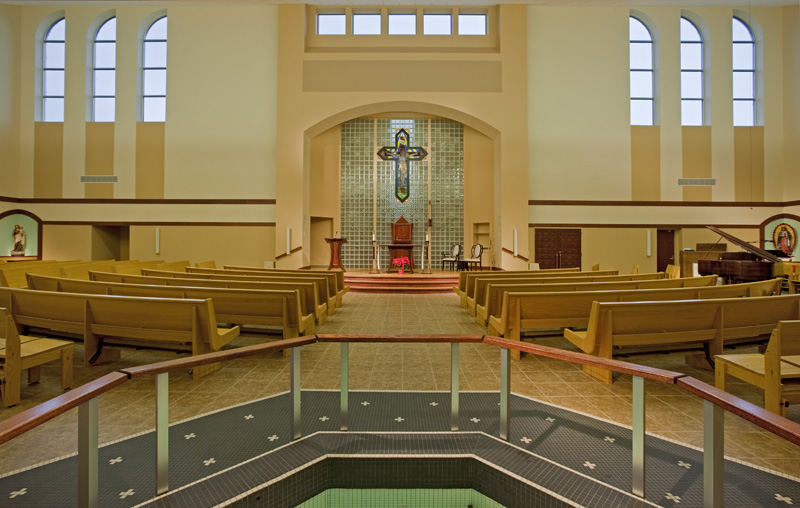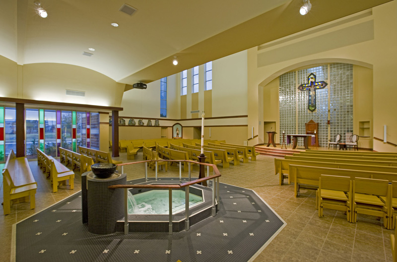 The gallery on the right shows how we transformed the existing sanctuary into a gracious space that more than serves St Albert's growing needs.